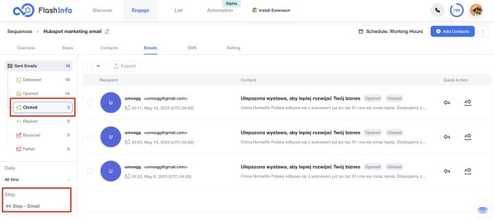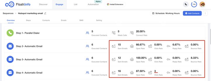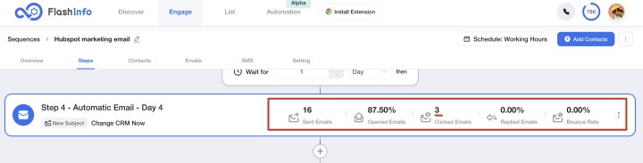 - The statistical numbers of the Sequence's Email Step support viewing details.